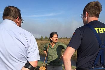Nachdem angefallene Entschädigungen für den Einsatz verschiedener Feuerwehren beim Moorbrand in Meppen auch neun Monate nach dem Einsatz von der Bundeswehr noch nicht beglichen wurden, hat Filiz Polat, regional zuständige Bundestagsabgeordnete von Bündnis 90/Die Grünen, in der gestrigen (26. Juni) Fragestunde des Deutschen Bundestages beim Bundesministerin der Verteidigung nachgehakt. Demnach wurden inzwischen etwa 5,5 Millionen Euro an Entschädigungen ausgezahlt. Zwei Rechnungen seien laut Verteidigungsministerium aber noch offen.