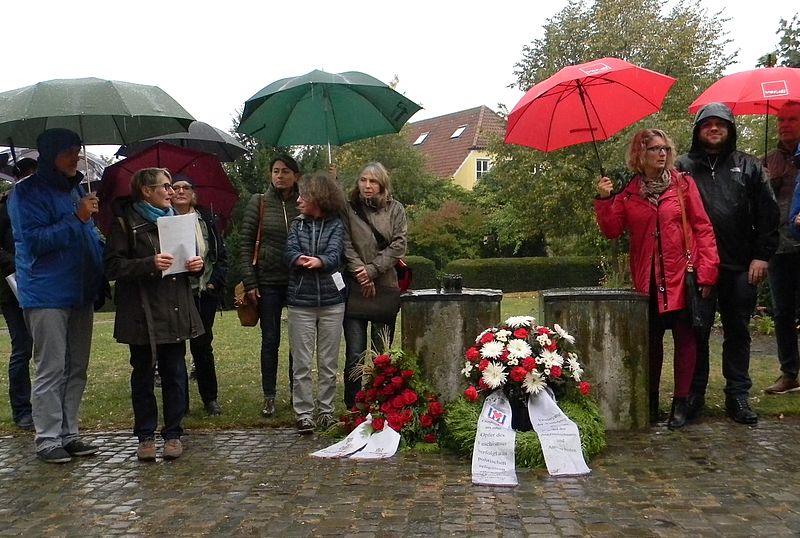Zur Erinnerung an diese Opfer des Nazi-Faschismus richtet die Vereinigung der Verfolgten des Nazi-Regimes - Bund der AntifaschistInnen (VVN-BdA) dort alljährlich eine Gedenkfeier aus. Nicole Verlage für den DGB Osnabrück und Astrid Müller für die GEW riefen die damaligen Geschehnisse ins Gedächtnis. Der Kreisverband Bündnis 90/Die Grünen, vertreten durch Ralph Griesinger, hat gemeinsam mit der Bundestagsabgeordneten Filiz Polat und Katrin Langensiepen (Mitglied des Stadtrats Hannover und Sprecherin der Bundes-AG Behindertenpolitik von Bündnis90/Die Grünen) im Gedenken an die Deportationen einen Kranz niedergelegt.