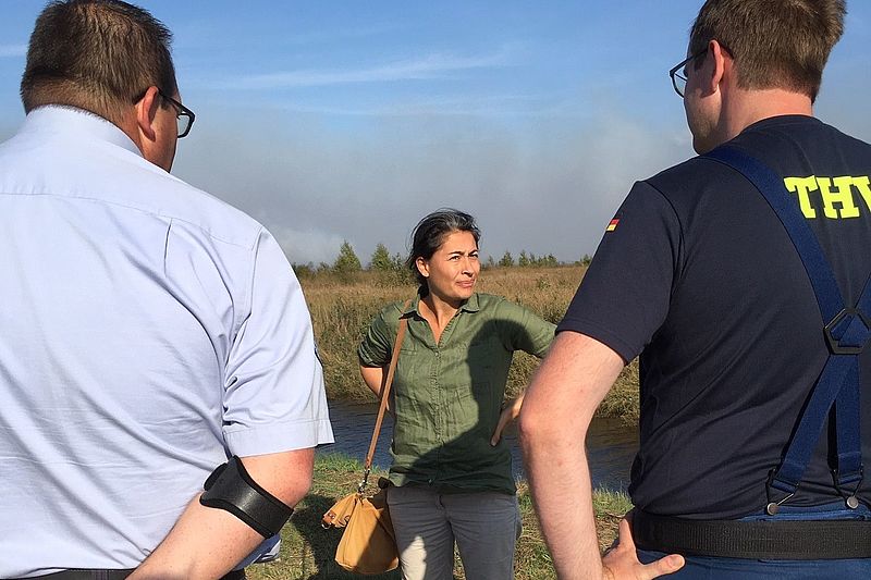 Filiz Polat, regional zuständige Bundestagsabgeordnete von Bündnis 90/Die Grünen und Obfrau im Innenausschuss, hat heute (19. September) die Wehrtechnische Dienststelle 91 in Meppen besucht, um sich ein Bild über die aktuelle Lage des vor zwei Wochen ausgebrochenen Moorbrand zu verschaffen. Ein Munitionstest der Bundeswehr hatte den Brand ausgelöst.