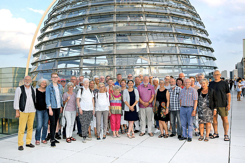 Auf dem Programm stand der obligatorische Besuch des Deutschen Bundestages. Aufgrund einer sitzungsfreien Woche bekam die Gruppe einen politischen Vortrag auf der Besuchertribüne des Plenarsaals, bevor die Abgeordnete in einem Nebenraum des Reichstages Rede und Antwort zu aktuell diskutierten Themen stand.